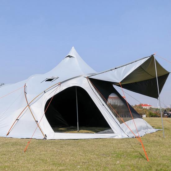 Tienda de campaña tipo túnel para acampar al aire libre Fabricantes de MOQI, tienda de campaña tipo túnel de cuatro postes, tienda de lujo Glamping, tienda de campaña al aire libre tipo túnel para la familia Más